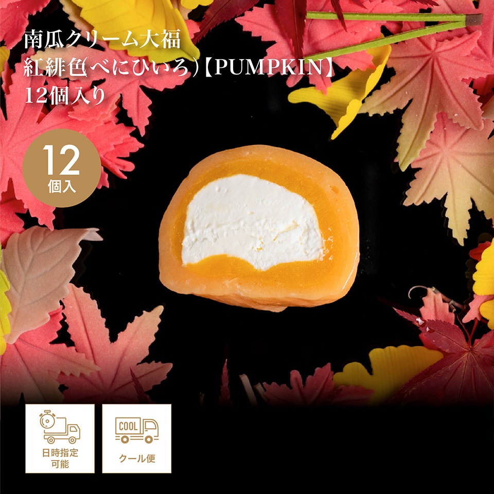 | 名称 | 南瓜クリーム大福 紅緋色 (べにひいろ)【PUMPKIN】(秋季限定)12個入り |